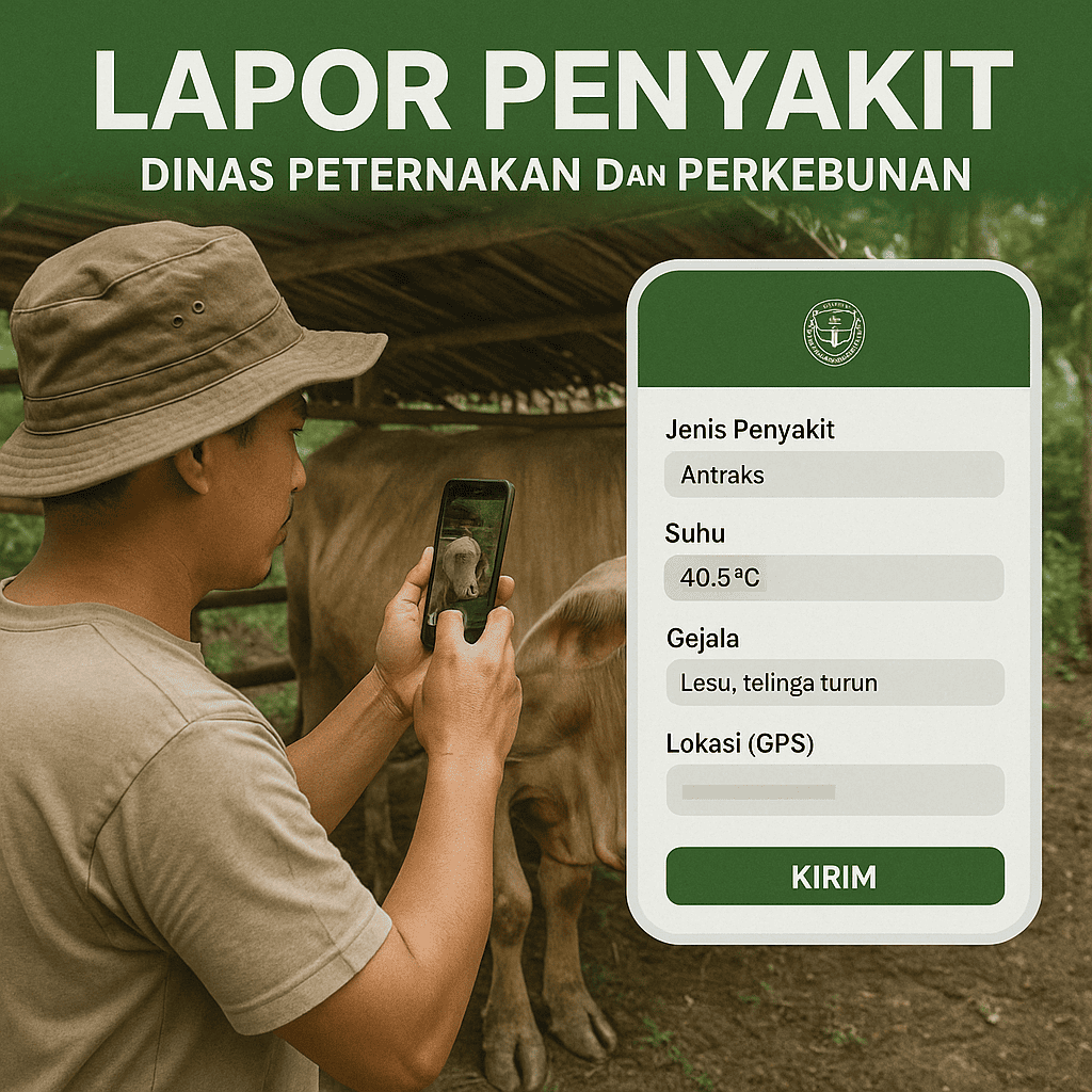 Selamat Datang di laman resmi Dinas Peternakan & Perkebunan Kabupaten Pinrang. Kami berkomitmen memperkuat kesehatan hewan, meningkatkan produktivitas peternakan dan perkebunan, serta memperluas akses pasar melalui layanan publik yang mudah, cepat, dan akuntabel.